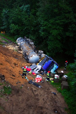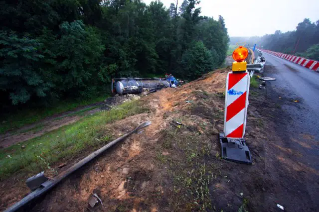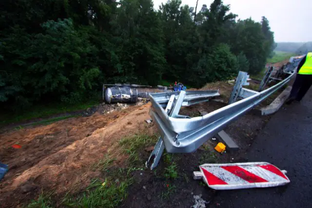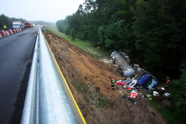 Do zdarzenia doszło przed godz. 6.00. Cysterna wioząca płynny asfalt spadła z wiaduktu kolejowego na „krajowej trójce” pod Zieloną Górą.