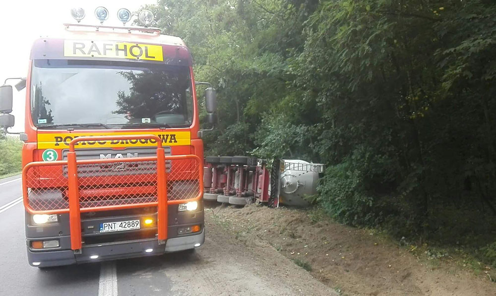 Na miejscu jest Pomoc Drogowa Zbąszyń. Trwa skomplikowane wyciąganie ciężkiej cysterny z pobocza. Utrudnienia na drodze wojewódzkiej do Gorzowa mogą potrwać jeszcze kilka godzin.