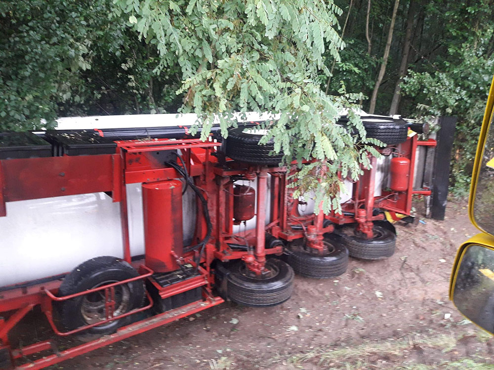 Kierowca cysterny, jadącej ze Skwierzyny, podczas jazdy wpadł w poślizg. Samochód wypadł z drogi i przewrócił się w rowie. Na miejsce dojechały służby ratunkowe. Na szczęście nikomu nic się nie stało.