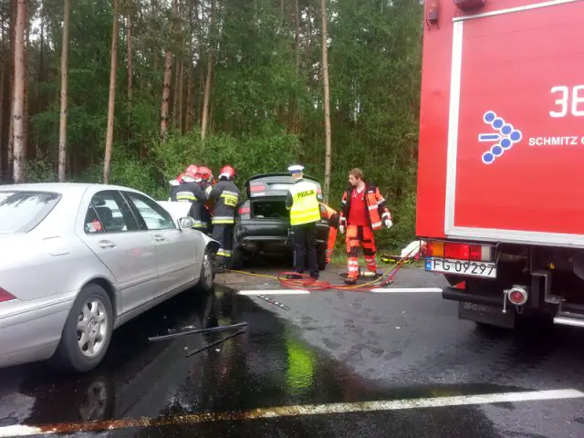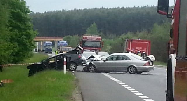 Do wypadku doszło na krajowej „trójce” na odcinku Nowa Sól – Nowe Miasteczko. Kierowca renault laguna nagle zjechał na przeciwległy pas ruchu. Tam czołowo zderzył się z jadącym z naprzeciwka mercedesem.