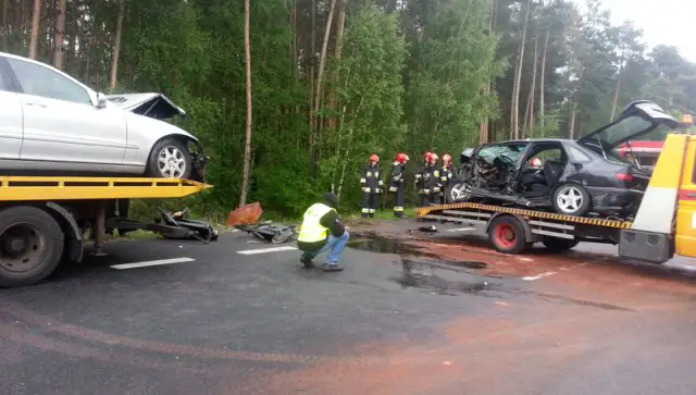 W niedzielę około godz. 15.00 renault laguna zjechał na przeciwległy pas ruchu i tam czołowo zderzył się z jadącym z naprzeciwka mercedesem.