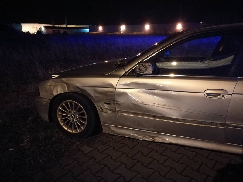 Drugie bmw po uderzeniu przez volkswagena wpadło jeszcze na pieszego potrącając go. Mężczyzna z urazem nogi trafił do szpitala. Kierowca volkswagena był pijany. – Miał 1,5 promila alkoholu – mówi mł. asp. Kimet.