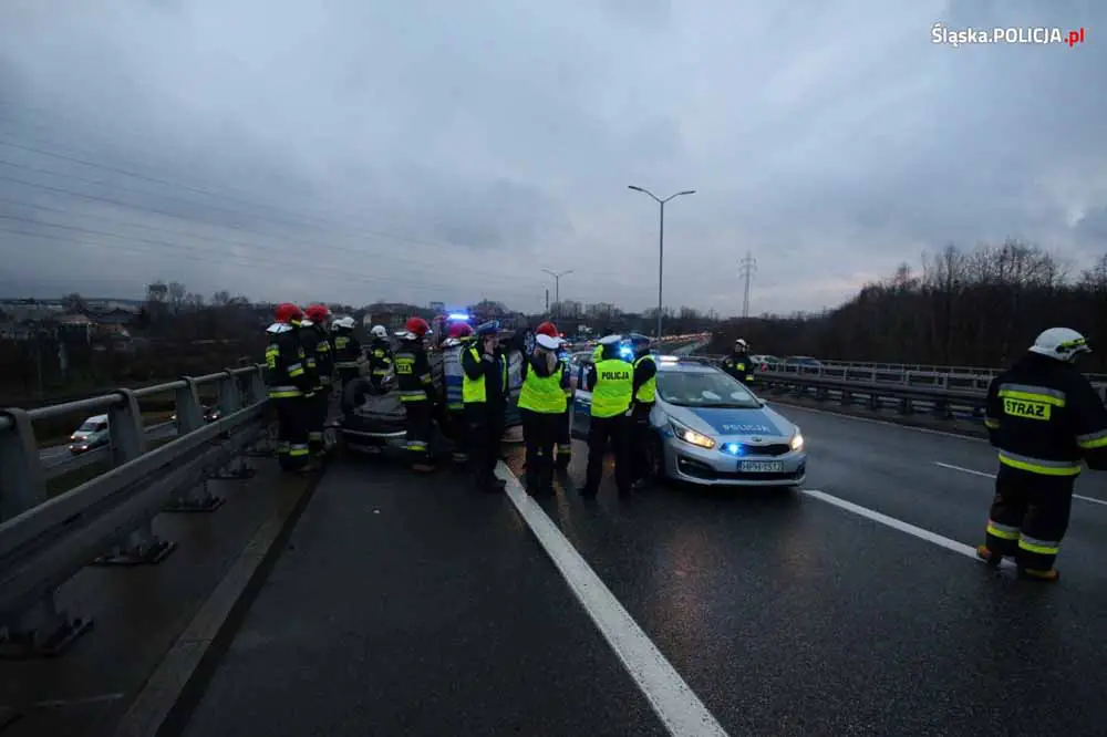 Trasą z Zabrza do Katowic jechała kolumna kilku samochodów z delegatami MSZ przedstawicieli Botswany, eskortowana przez jeden policyjny radiowóz. Ze wstępnych policyjnych ustaleń wynika, że jadący na czele kolumny radiowóz prawdopodobnie wpadł w poślizg i dachował.