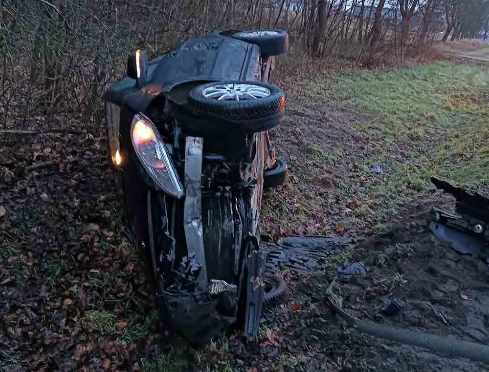Do niebezpiecznego zdarzenia doszło w poniedziałek, 23 grudnia, w Nowym Kisielinie na ulicy Jaworowej. Kierujący uderzył mercedesem w bariery i dachował.