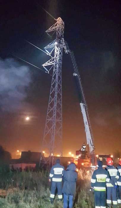 43-latek wszedł na słup wysokiego napięcia i groził skokiem z wysokości 35 metrów. Policjanci negocjowali z desperatem kilka godzin. Udało się. Mężczyzna trafił pod opiekę medyków.
