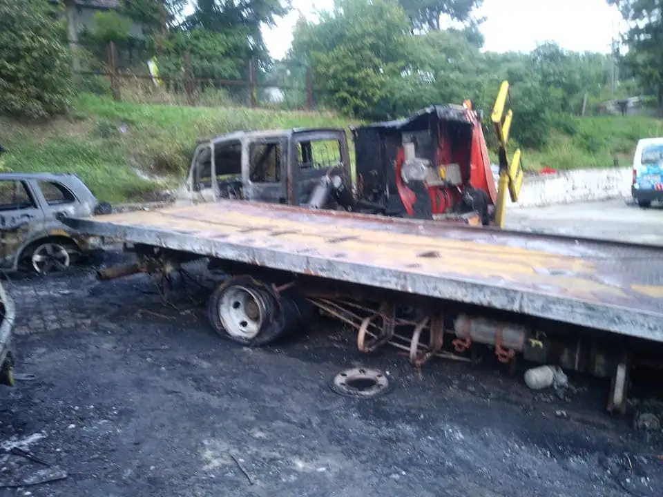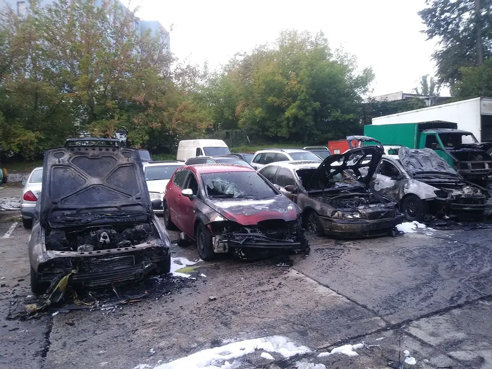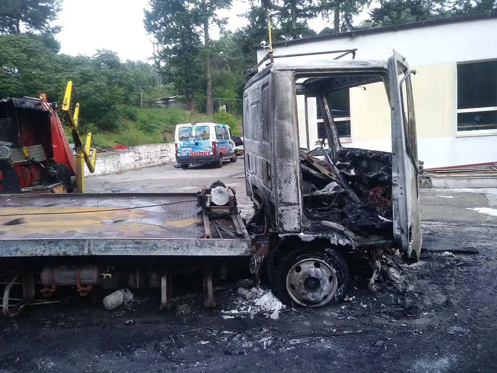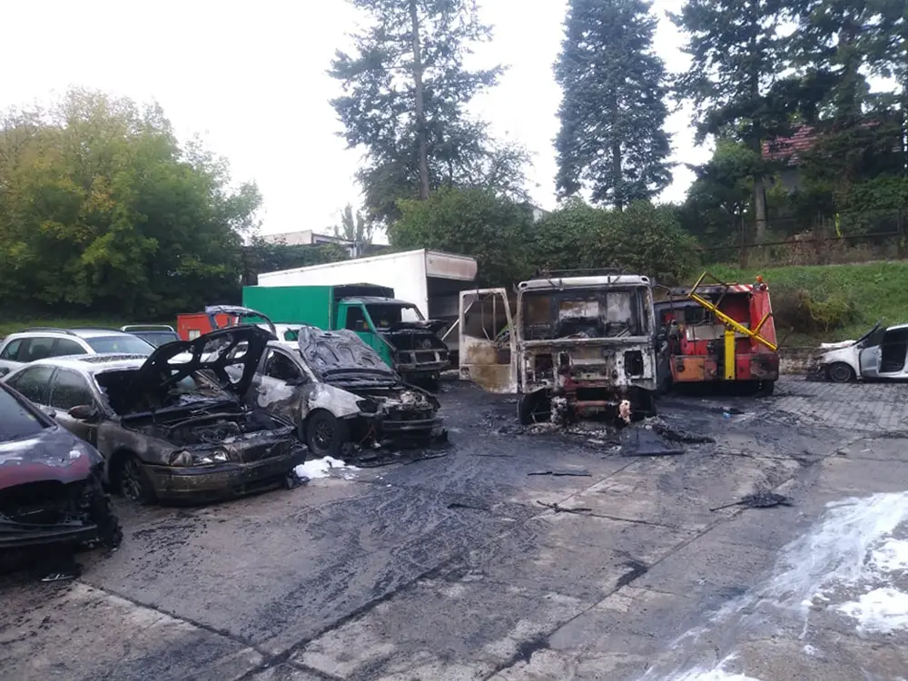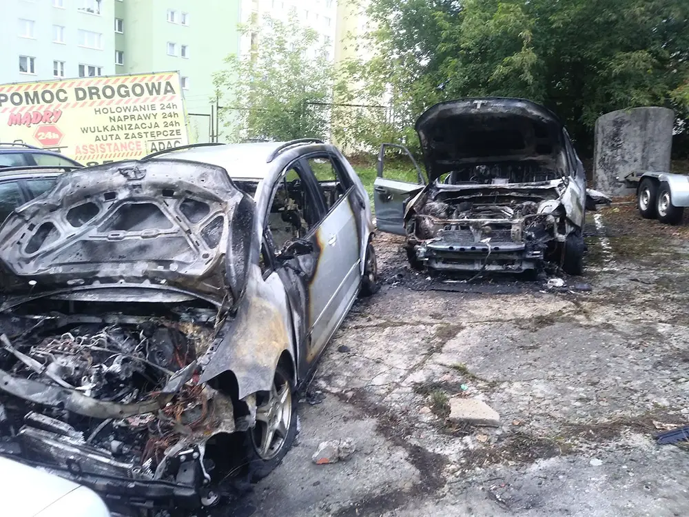 To było podpalenie. – Na nagraniu z monitoringu widać mężczyznę, który podpala samochody z miotacza płomieni – mówi Jarosław Baryła, właściciel pomocy drogowej. Ogień natychmiast obejmują samochody. Potężny pożar wybucha w kilkanaście sekund. W sumie spalonych zostało 10 samochodów. Wszystkie auta pomocy drogowej i dwie lawety. Spalony został nawet bus klubu sportowego Admira, którym J. Baryła wozi dzieci na zawody w Polsce.