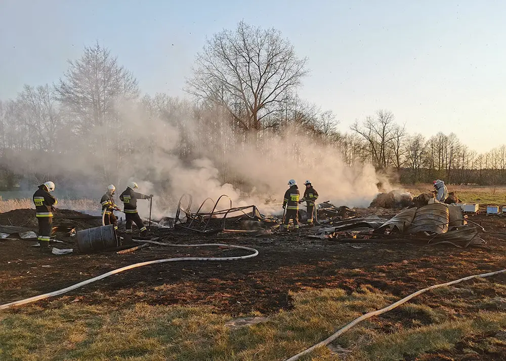 W pożarze w Książu Śląskim spłonęło aż 36 pszczelich rodzin po około 30 tys. pszczół każda. W ogniu zginęło ponad milion pszczół. To pasieka Piotra Jonaczyka. Straty sięgają ponad 50 tys. zł.