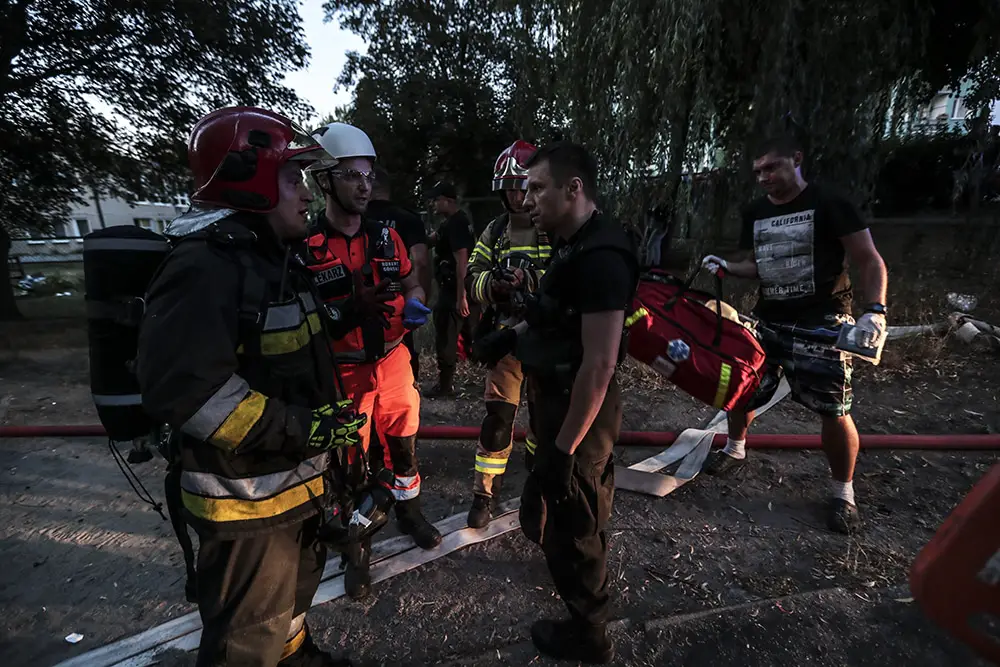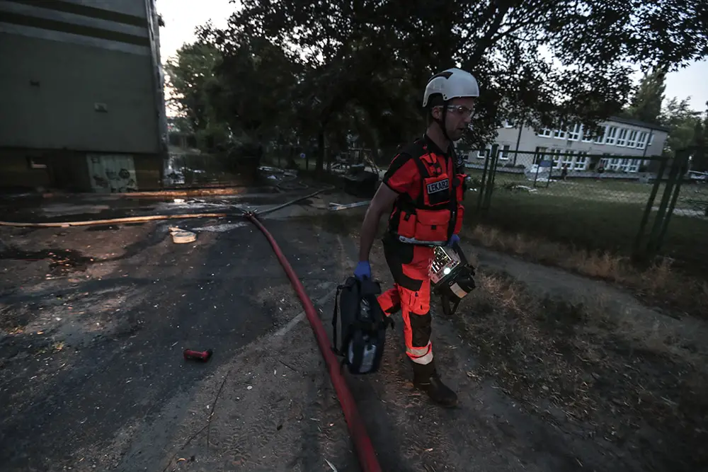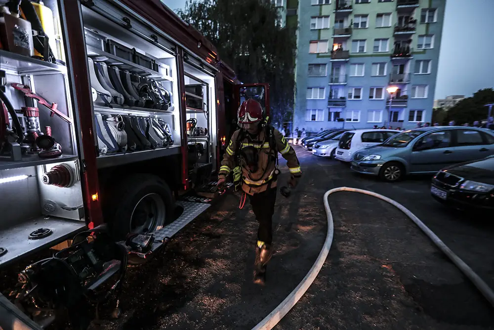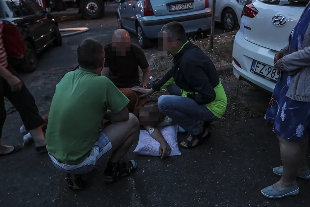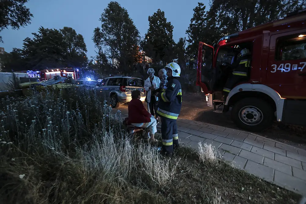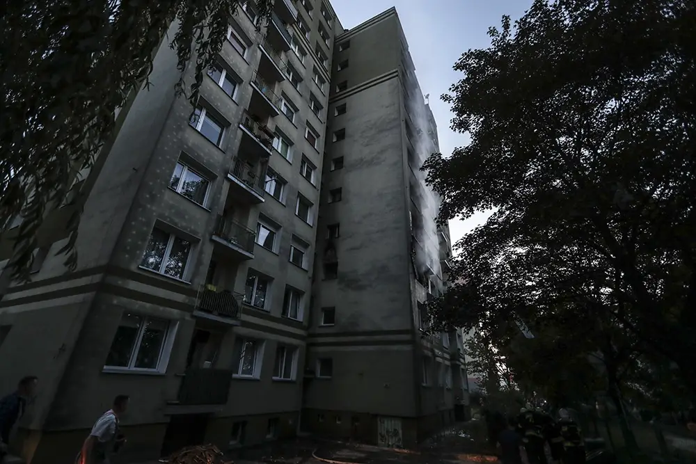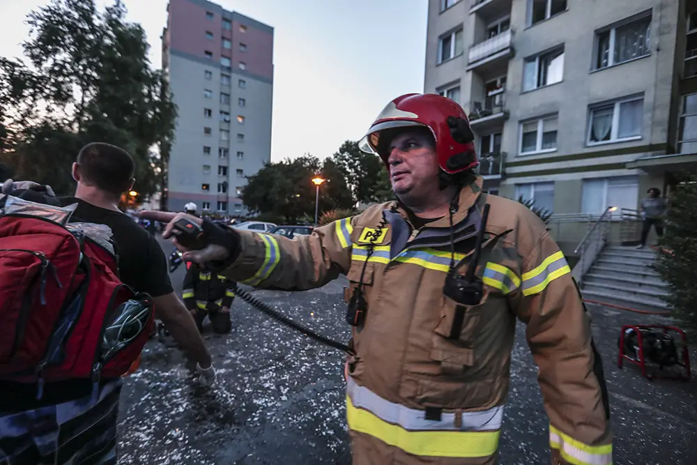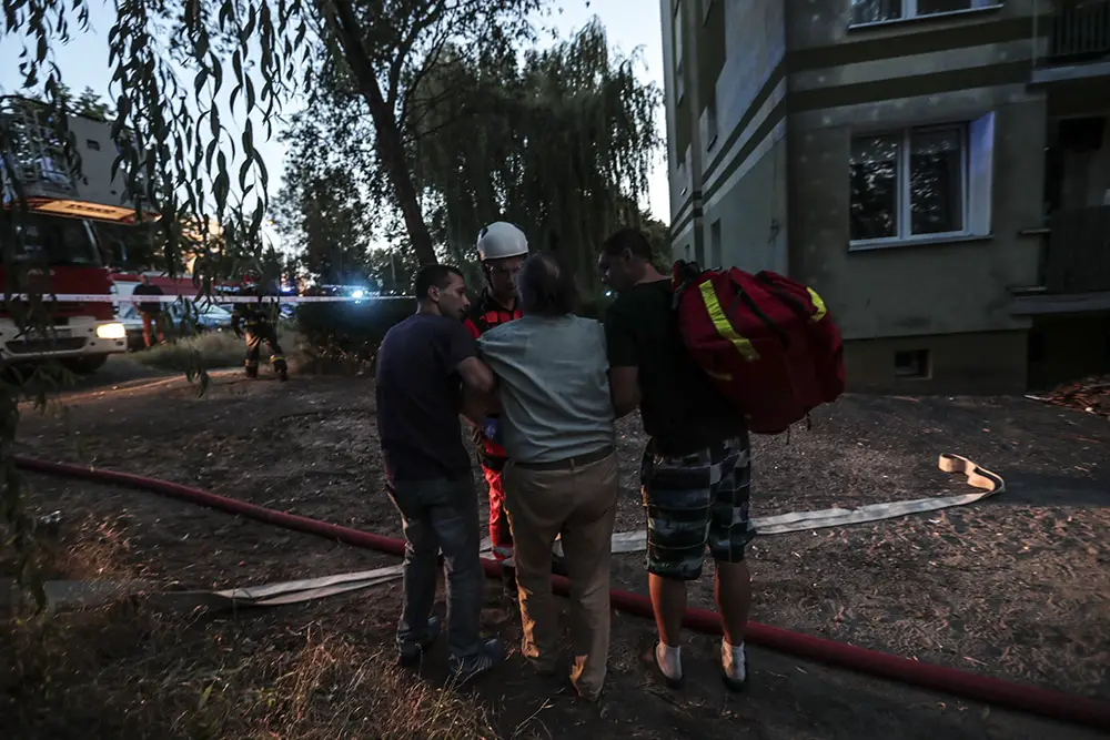 Na miejscu natychmiast przyjechały służby ratunkowe. Strażacy zaczęli gasić pożar w mieszkaniu na drugim piętrze wieżowca. Strażacy oraz ekipy pogotowia ratunkowego przeszukiwały wieżowiec i razem z policjantami wyprowadzali zdezorientowanych i wystraszonych mieszkańców. Było niebezpiecznie. Z okien co jakiś czas spadały szyby. Z mieszkania, w którym doszło do wybuchu, wydobywał się gęsty dym. Widać było również zniszczenia po wybuchu klatce schodowej. Okna oraz części ścian mieszkania, w którym doszło do wybuchu wyleciały kilkadziesiąt metrów dalej.