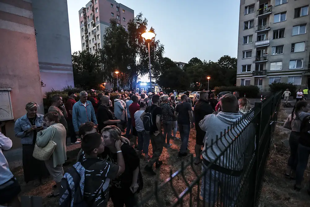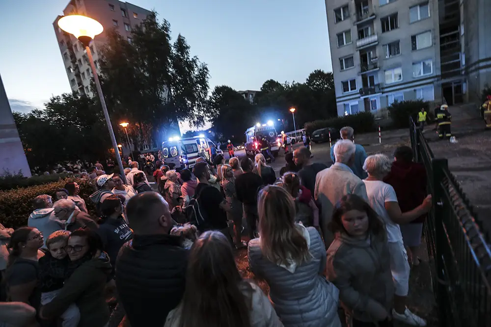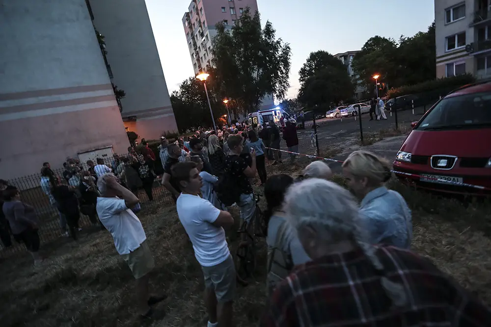 Na miejscu cały czas trwa akcja ratunkowa. Wokół bloków zebrał się tłum mieszkańców.