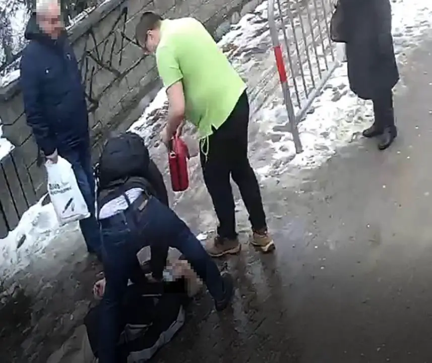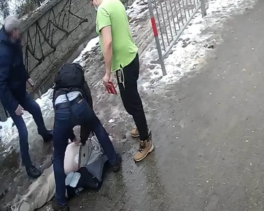 Po chwili do reanimacji dołączył przechodzień. Na zmianę reanimowali mężczyznę używając defibrylatora.