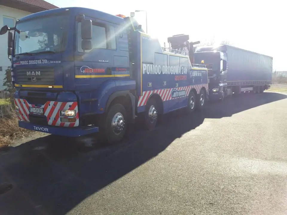 Ciężarówkę na polecenie policji zabezpieczyła pomoc drogowa Maxmar.