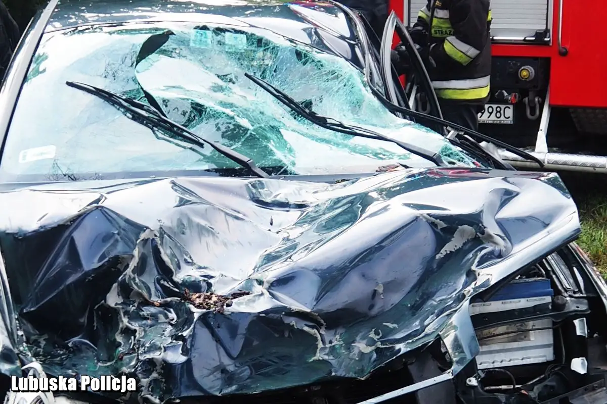 Skończyło się na uszkodzeniach auta. Sprawna akcja policjantów i strażaków pozwoliła na szybkie odblokowanie trasy.