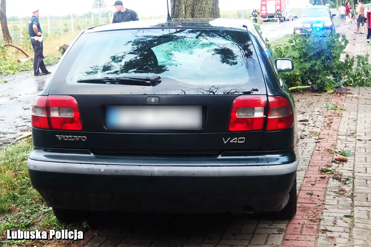 Jedno z nich spadło na drogę w miejscowości Bronowice przygniatając jadący samochód. O wielkim szczęściu może mówić małżeństwo podróżujące tym autem. Połamane drzewo spadło na przód ich samochodu, nie powodując u nich żadnych obrażeń.
