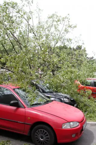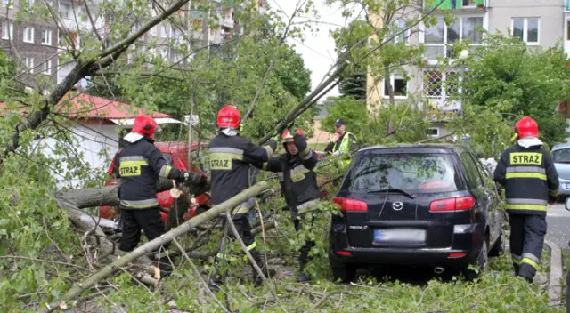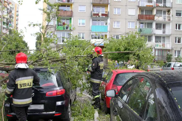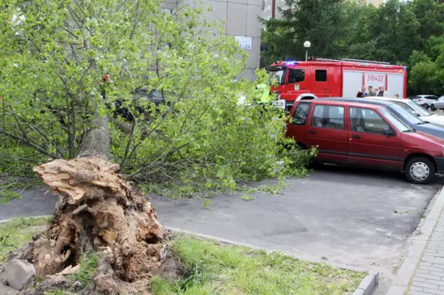 Drzewo upadło na kilka samochodów zaparkowanych tuż pod nim. Uszkodziło przynajmniej cztery pojazdy, w tym jeden bardzo poważnie.