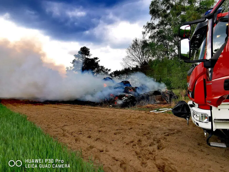 Do pożaru doszło w piątek, 1 maja. Strażacy OSP Dobiegniew walczą z pożarem sterty siana przy lesie w miejscowości Słowin.