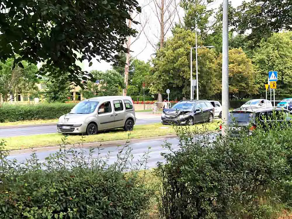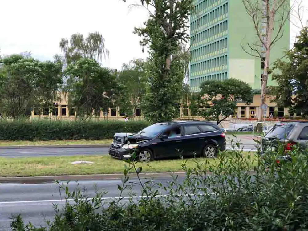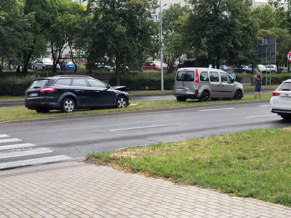 Najpierw na wysokości banku NBP kierowca jadący fordem w kierunku Uniwersytetu Zielonogórskiego uderzył w tył renault. Oba pojazdy zjechały na pas zieleni i nie utrudniają ruchu.