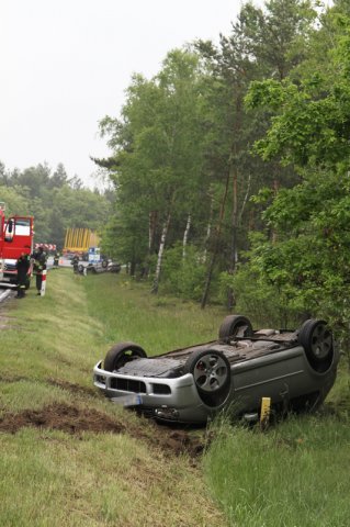 Czarna seria na „trasie śmierci” w sobotę zaczęła się rano. Młody kierowca opla astry jadąc za szybko na łuku drogi wyleciał na pobocze i dachował.