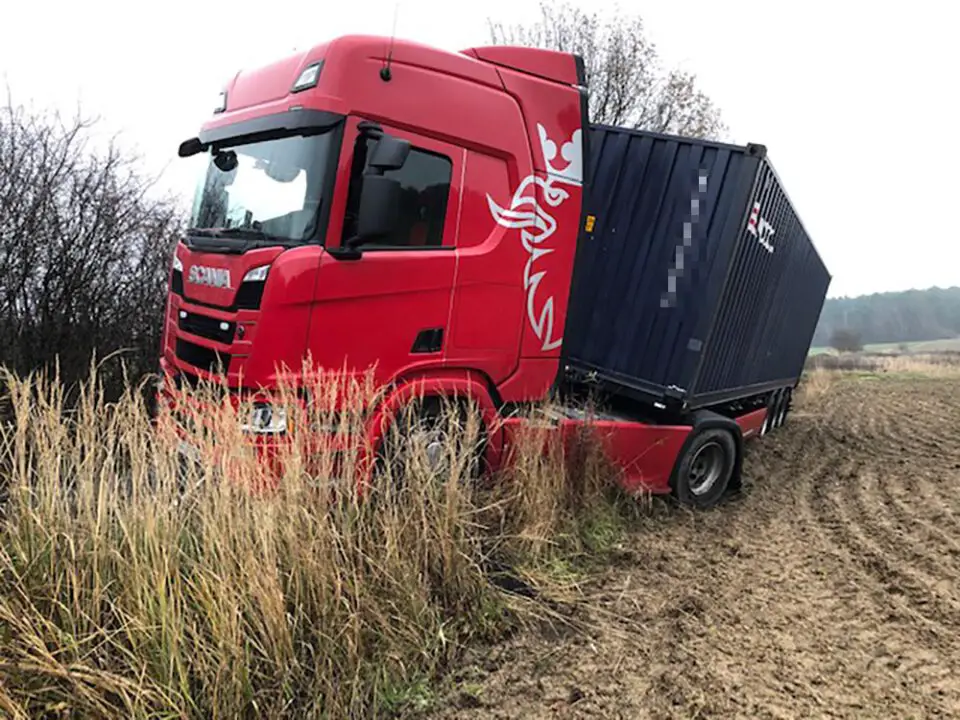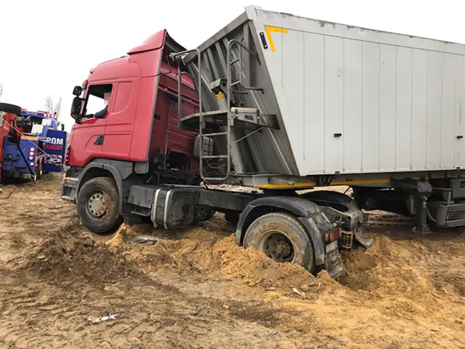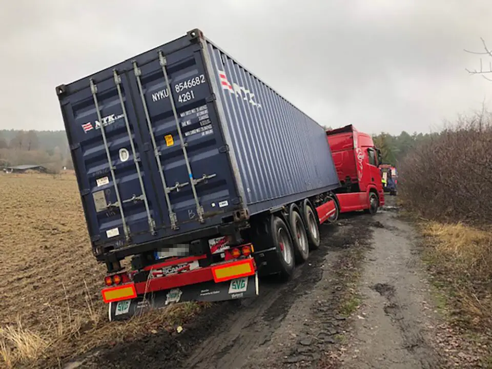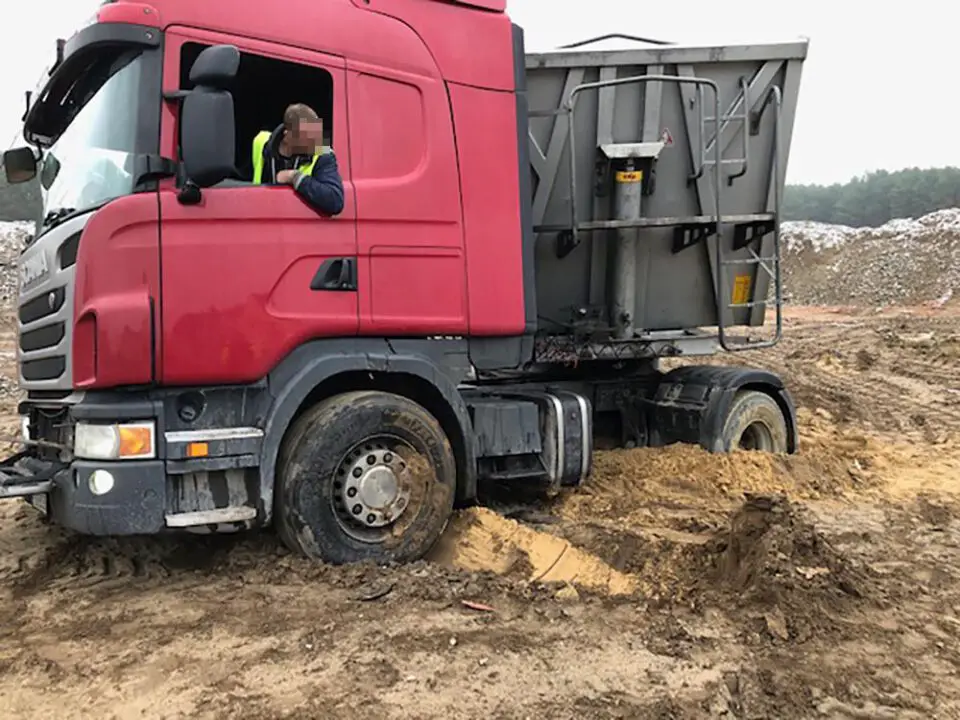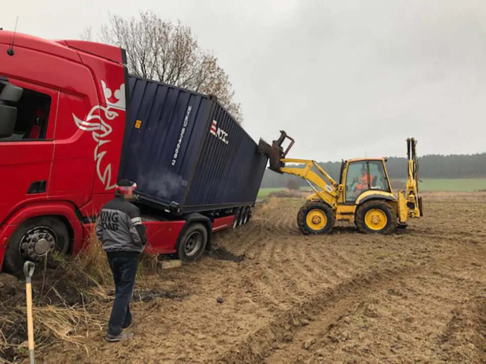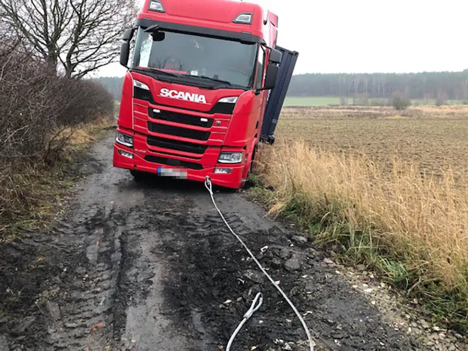 Kiedy pomoc drogowa kończyła wyciąganie ciężarówki na Czarkowie, przy drodze koło strefy ekonomicznej w Starym Kisielinie zakopała się druga ciężarówka. Kierowca ciężarówki na niemieckich numerach rejestracyjnych pomylił drogi i niestety ugrzązł w miękkim poboczu. Również nie był w stanie samodzielnie wyjechać.