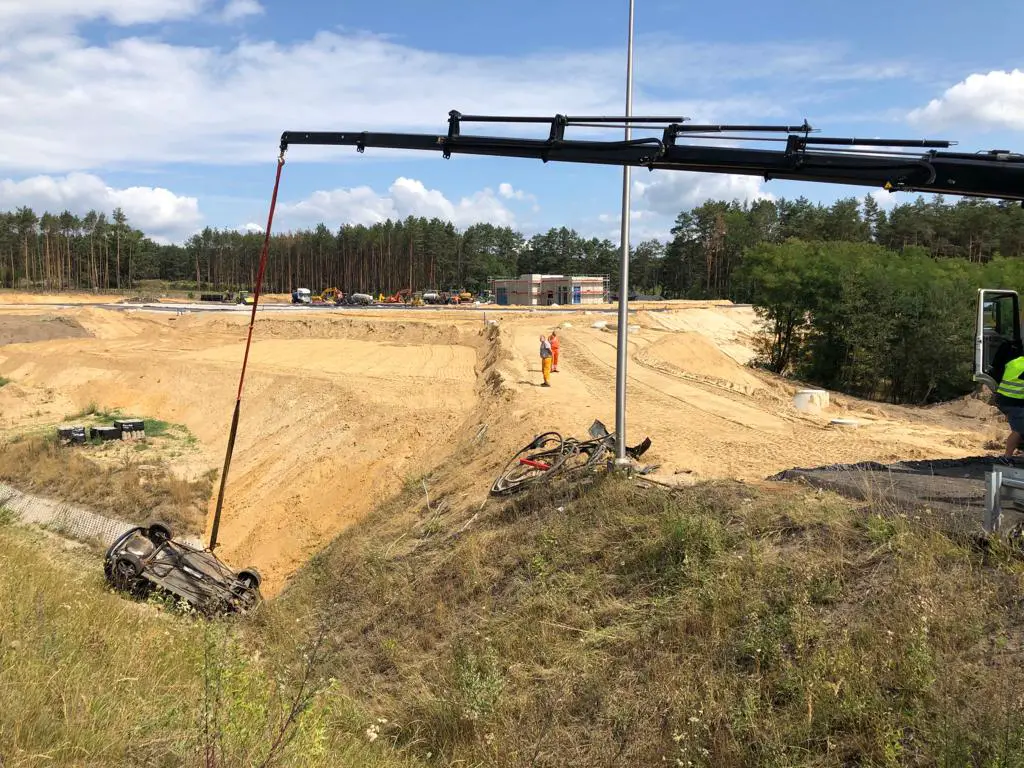 Samochód zabrała już pomoc drogowa. – Do wyciągnięcia opla musieliśmy użyć dźwigu, bo leżał na dole w kanale burzowym – mówi Marek Dziubałka z pomocy drogowej Maxmar w Zielonej Górze.