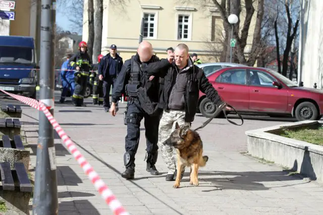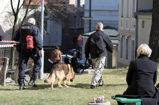 Na miejsce sprowadzono policyjnego psa szkolonego do wyszukiwania ładunków wybuchowych. Dokładnie sprawdzono budynek po budynku. Niczego nie znaleziono. Kilka minut po godz. 12.00 sędziowie oraz pracownicy administracji wrócili do budynków.