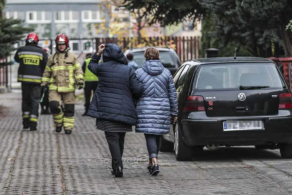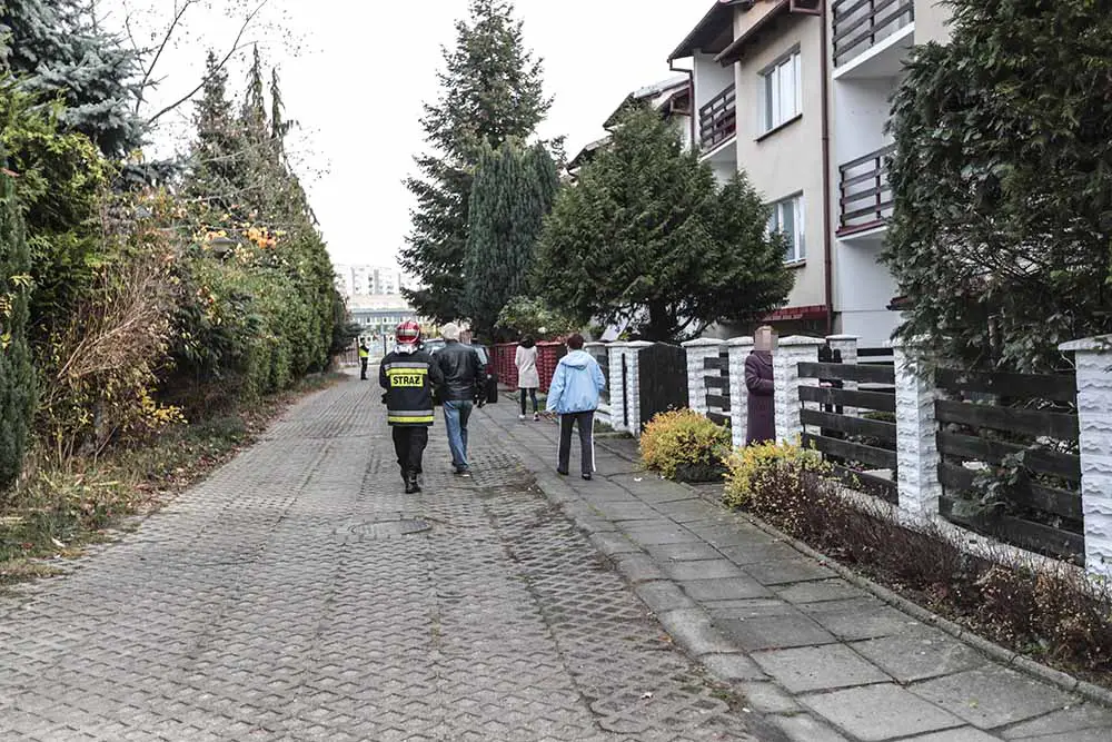Na ulicy Dunikowskiego pojawiła się policja i pogotowie gazowe. Po pewnym czasie dojechały wozy straży pożarnej. Podjęto decyzję o ewakuowaniu mieszkańców domów przy ulicy. Zdezorientowane osoby nie wiedziały co się dzieje. Strażacy pukali od drzwi do drzwi i prosili o opuszczenie domów.