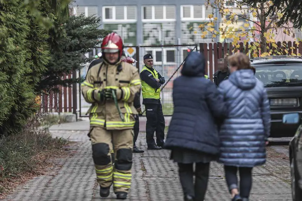 Ulica została zamknięta i odgrodzona taśmą. Strażacy poinformowali również okoliczną szkołę, żeby dzieci nie wychodziły na boisko przylegające do ewakuowanej ulicy.