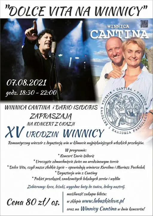 W najbliższa sobotę, 7 sierpnia, z okazji 15-lecia Winnicy Cantina w Mozowie koło Sulechowa odbędzie się koncert „Dolce Vita na Winnicy”. Szykuje się rewelacyjna impreza.