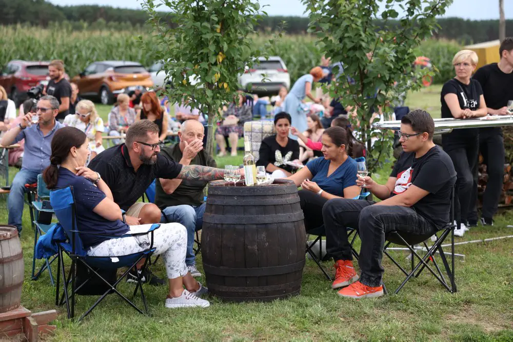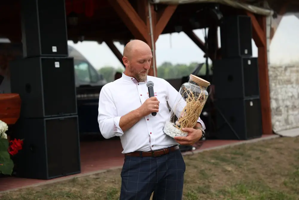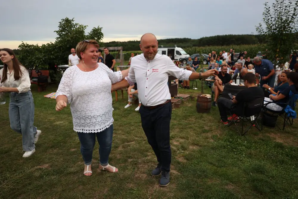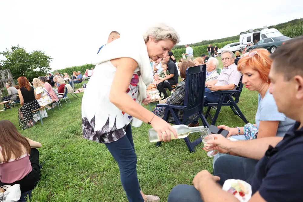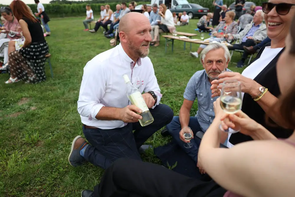 Do Winnicy Cantina goście zjeżdżali się przed godz. 18.00. Dojechał również specjalny autobus z Zielonej Góry. Powoli trawnik przy wiacie zapełniał się ludźmi. – Pamiętam kiedy z Karoliną i małymi dziećmi sadziliśmy pierwsze krzewy – mówi Mariusz Pacholak. Dziś w Cantinie rośnie już kilkanaście tysięcy krzewów winorośli. – 15 lat minęło jak jeden dzień – mówi M. Pacholak.