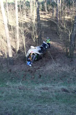 Kierowca fiata jechał w kierunku Sulechowa. Na odcinku pod Zieloną Górą nagle wpadł w poślizg i wypadł z drogi. Samochód zleciał z kilkunastometrowej skarpy.