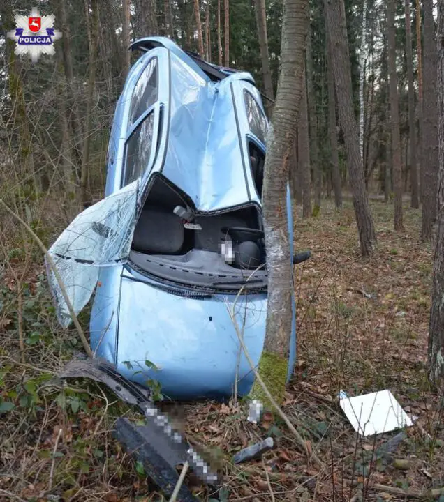 Do groźnie wyglądającego zdarzenia drogowego doszło w czwartek, 6 grudnia, w miejscowości Hutki (woj. lubelskie). Po godzinie 13.00 dyżurny zamojskiej policji otrzymał zgłoszenia, że na poboczu przy zakręcie drogi „wisi na drzewie” samochód osobowy, a w jego środku jest zakleszczona kierująca.