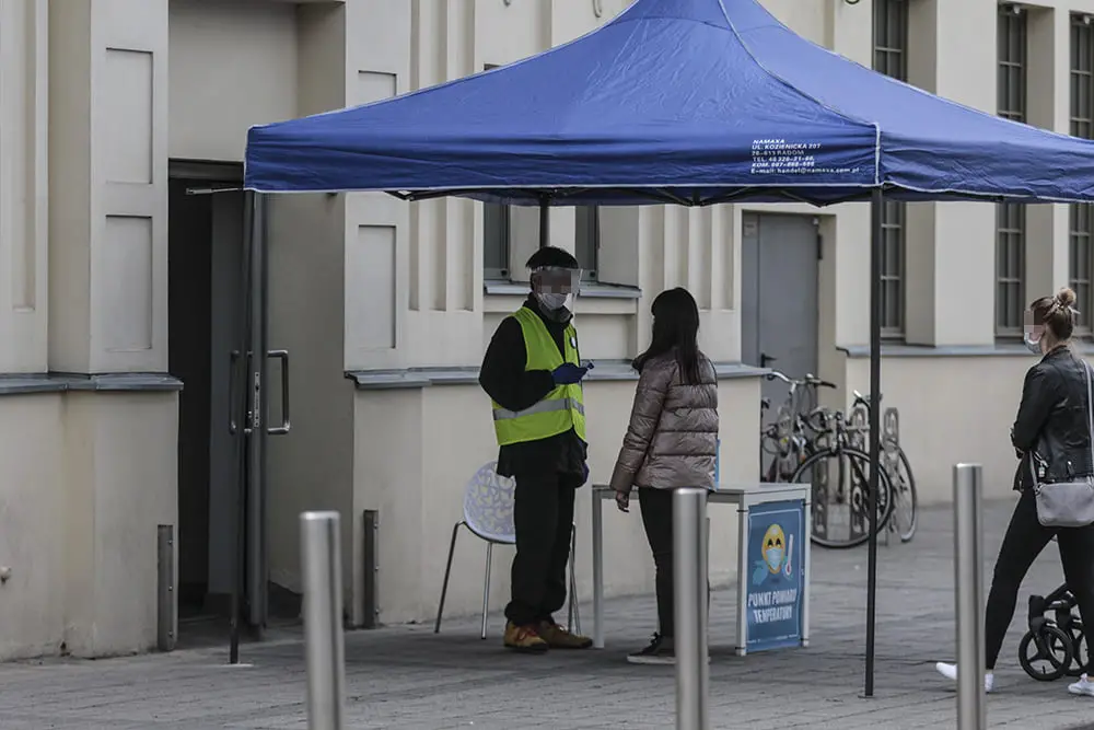 Każdej osobie wchodzącej do galerii Focus Mall jest mierzona temperatura. To nowość. W środku galerii nie było tłumów. Większość sklepów w galerii została już otwarta dla klientów. Nieczynne są jednak sklepy Reserved, House oraz Cropp. Działał za to salon Empik.