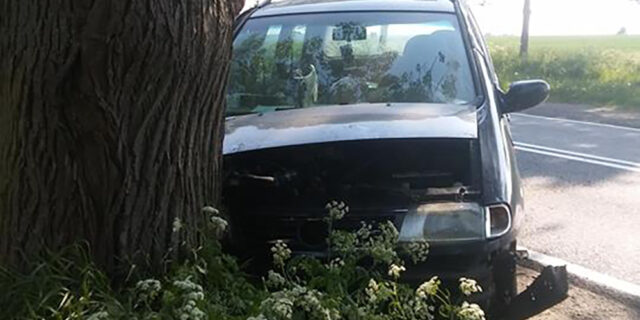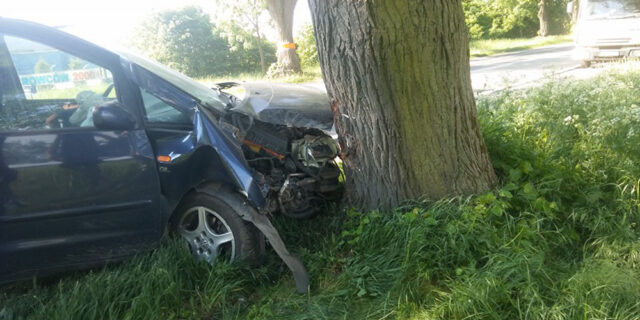 Do zdarzenia doszło we wtorek, 15 maja, na drodze krajowej nr 22 w podgorzowskich Różankach. Kierowca zjechał na bok, żeby nie uderzyć w tył ciężarówki i trzasnął w drzewo.