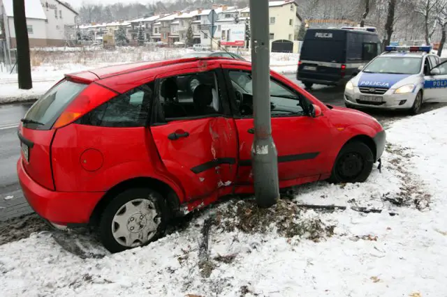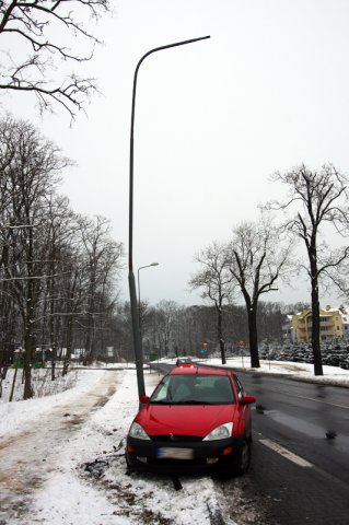 W środę około godz. 15.00 kierowca forda focusa wpadł w poślizg, wyleciał z drogi i uderzył w latarnię. Kierowca i pasażerowie uciekli z miejsca zdarzenia porzucając rozbite auto.