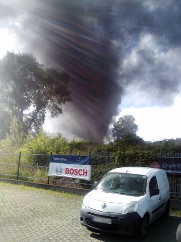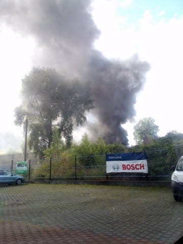 Czarny gęsty dym nad Zieloną Górą pojawił się około godz. 16.00. Wydobywał się z terenu browaru przy ul. Kożuchowskiej.