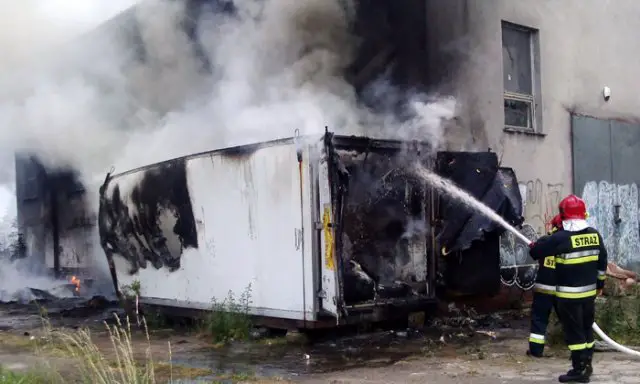 Strażacy szybko poradzili sobie z płomieniami. Kontener spłonął jednak doszczętnie.