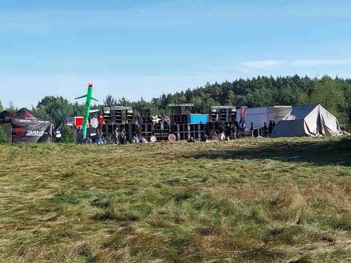 Sprawa miała swój początek w nocy z piątku na sobotę, 27 września. Policjanci z komendy w Szamotułach dostali liczne zgłoszenia dotyczące zakłócania ciszy nocnej w rejonie miejscowości Chrusty. Jak wynikało z informacji przekazanych przez mieszkańców, z pobliskiego lasu dobiegała głośna muzyka. Funkcjonariusze, którzy udali się na miejsce, potwierdzili zgłoszenia. Na terenie jednej z działek znajdowało się około 80 osób, a z ustawionej tam prowizorycznej sceny puszczano muzykę.