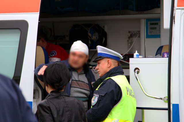 Z pierwszych ustaleń policji wynika, że kierowca golfa na krośnieńskich numerach rejestracyjnych wymusił pierwszeństwo na prawidłowo jadącym tico. Doszło do zderzenia. Poszkodowany został kierowca tico. Pomocy udzieliła mu ekipa karetki pogotowia tamując krwawiącą ranę na głowie.