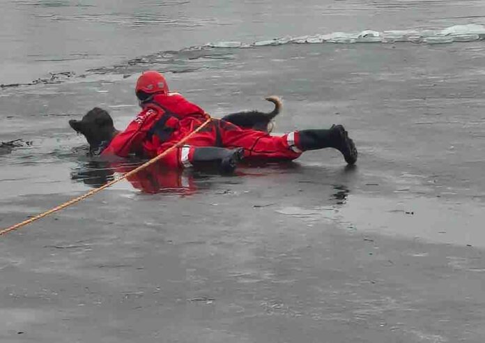 Na miejscu szybko pojawiła się jednostka straży pożarnej z Kostrzyna nad Odrą. Strażacy od razu przystąpili do akcji ratunkowej. Dzięki sprawnym i dobrze skoordynowanym działaniom strażaków, pies został ewakuowany na brzeg, gdzie został od razu ogrzany. Warto zaznaczyć, że w pobliżu znajdował się również drugi pies, który, na szczęście, nie był uwięziony. Bał się o swojego towarzysza i nie zostawił go samego.