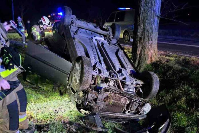 We wtorek, 16 grudnia, o godz. 5.34 do dyżurnego straży pożarnej w Szamotułach wpłynęło zgłoszenie z Centrum Powiadamiania Ratunkowego dotyczące wypadku na drodze wojewódzkiej nr 182 w miejscowości Wróblewo. Dokładnie dachowania samochodu oraz jednej osobie rannej.