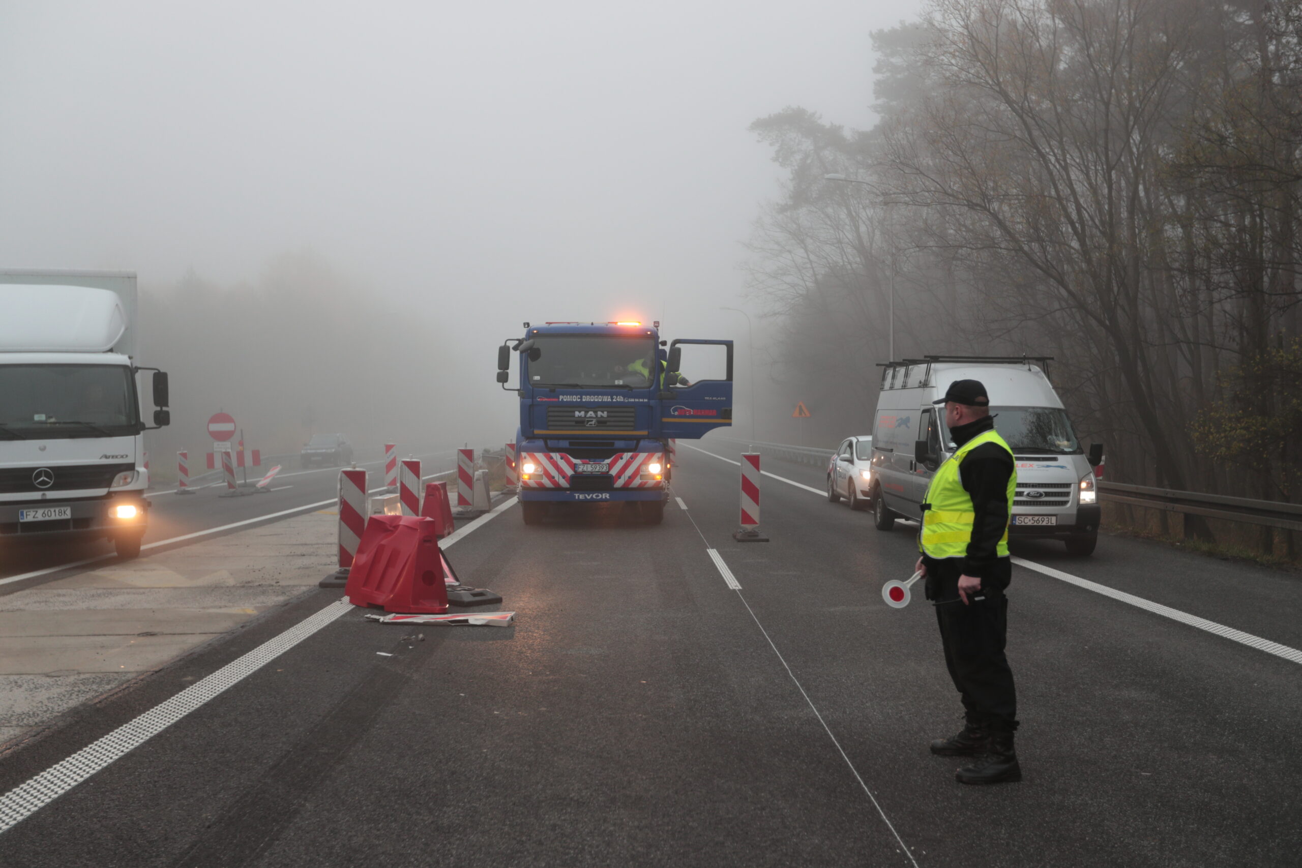 Na trasie są utrudnienia w ruchu. Policja wprowadziła ruch wahadłowy. Utrudnienia potrwają do godz. 9.30-10.00.