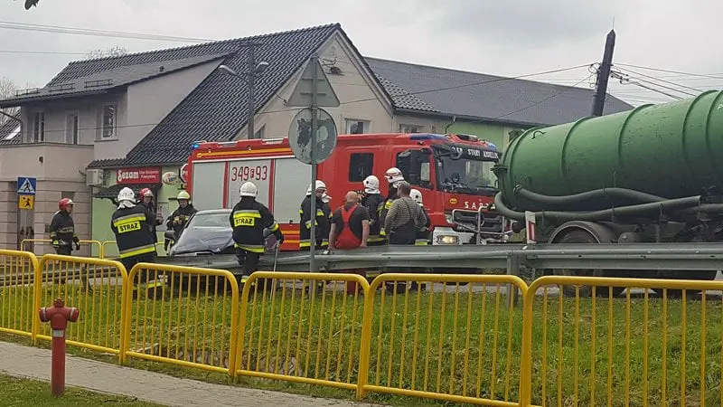 Do zdarzenia doszło w sobotę 7 października w Droszkowie koło Zielonej Góry. Kierujący mitsubishi wjechał prosto pod beczkowóz.