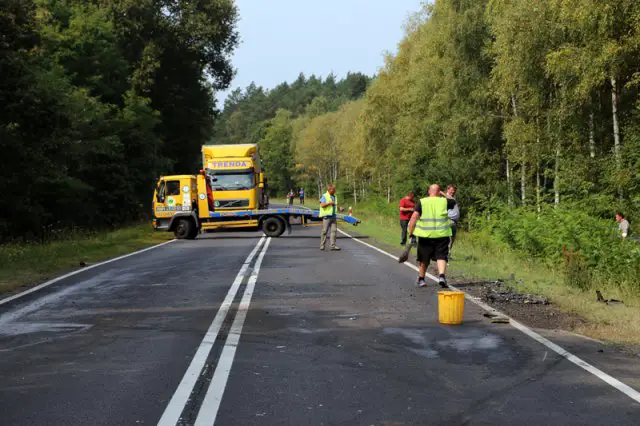 W sobotę kierujący fordem fokusem na trasie pod Zielona Górą nagle wjechał prosto pod jadącego volkswagena passata. Doszło do czołowego zderzenia. Passat wypadł z drogi zatrzymując się w lesie.