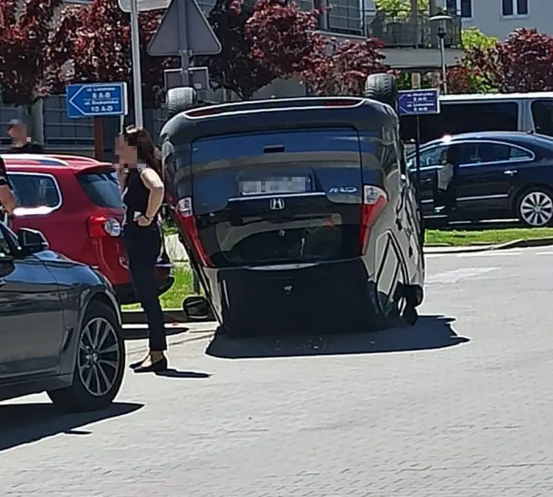 Kierująca hondą wymusiła pierwszeństwo i zderzyła się z busem. Honda po zderzeniu z busem dachowała wpadają jeszcze na trzeci samochód.