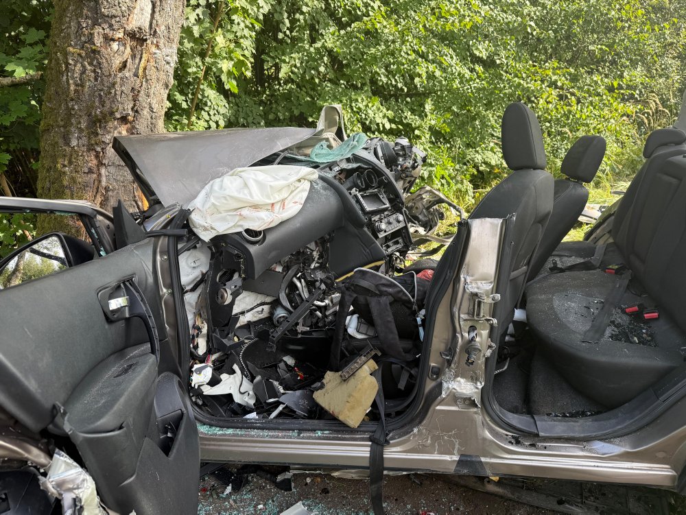 Na miejscu zdarzeniowa strażacy zastali bardzo mocno rozbity samochód osobowy. Kierujący Nissanem z potężną siłą uderzył w drzewo. Za pojazdem znajdowali się przytomna kobieta oraz nieprzytomne trzyletnie dziecko z zachowanymi czynnościami życiowymi oraz trzymiesięczne nieprzytomne niemowlę, bez czynności życiowych. W pojeździe znajdował się nieprzytomny mężczyzna. Służby natychmiast przystąpiły do udzielania pomocy poszkodowanym. – Podjęto resuscytację krążeniowo-oddechową u niemowlaka, a dostęp do uwięzionego w samochodzie mężczyzny wykonali strażacy przy użyciu ratowniczych narzędzi hydraulicznych – informuje mł. bryg. Grzegorz Różański ze straży pożarnej w Bartoszycach. Równolegle pomocy udzielono kobiecie i trzylatkowi.