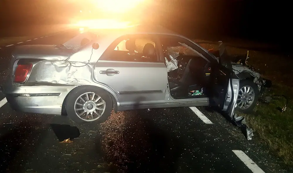 Kierujący hyundaiem uderzył w krowę, która w stadzie przebiegała przez drogę. Siła zderzenia była ogromna. Ranny kierowca trafił do szpitala w Słubicach na badania. Jak groźne są zderzenia ze zwierzętami świadczą uszkodzenia samochodu.