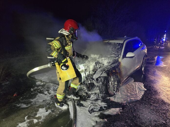 Wszystko wydarzyło się w niedzielę, 25 stycznia o godz. 1.35 w nocy. Straż pożarna z Szamotuł została wezwana do pożaru samochodu w miejscowości Brodziszewo. Samochód zapalił się w czasie jazdy. Płomienie pojawił się pod maską silnika.