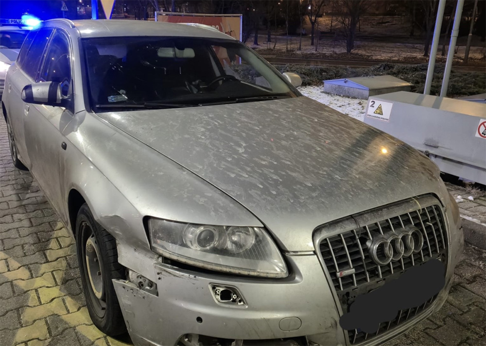 Było jeszcze ciemno, gdy patrol z Nowego Miasta zauważył na ul. Chartowo w Poznaniu Audi A6. Stan techniczny natychmiast zwrócił uwagę policjantów. Samochód miał rozbitą przednią szybą, urwany zderzak, uszkodzoną lampę oraz wybite szyby od strony kierowcy i z tyłu pojazdu. Taki widok nie mógł pozostać bez reakcji. Kierujący został natychmiast zatrzymany do kontroli.