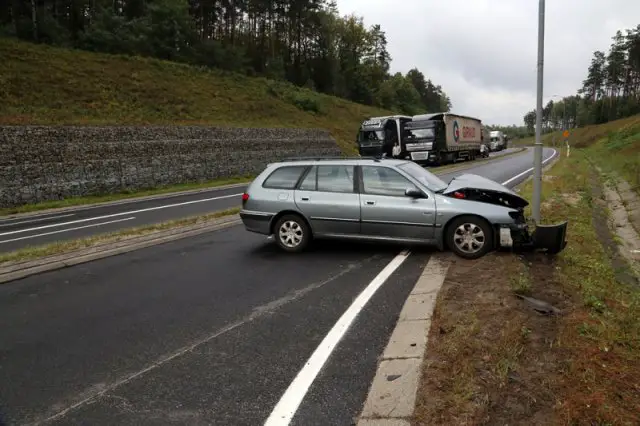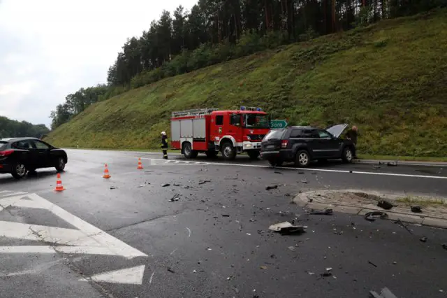 Kierowca peugeota został zabrany do szpitala. Droga została zblokowana. Na szczęście mężczyzna wyszedł ze szpitala tylko z ogólnymi potłuczeniami.
