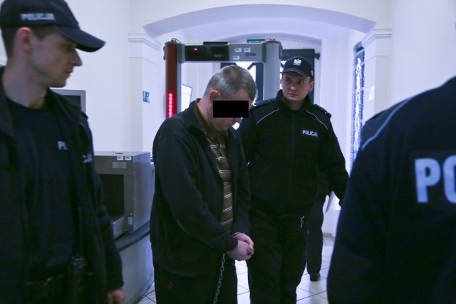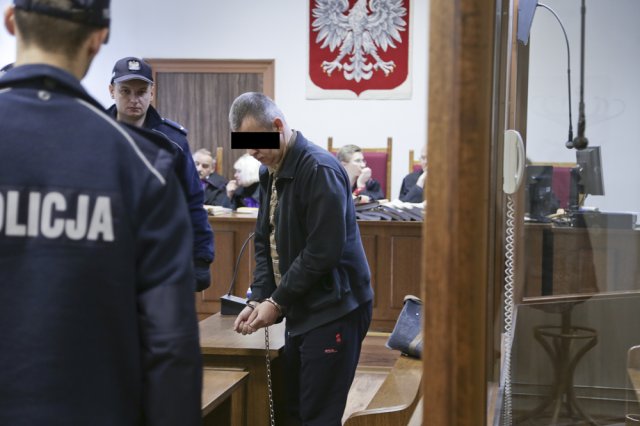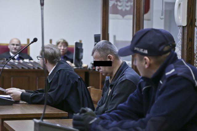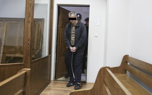 Jerzy M. do sądu przyjechał z celi aresztu, w którym przebywa od stycznia 2014 r. Skuty kajdankami za ręce i nogi został wprowadzony na salę rozpraw. Schemat jego postępowania w sądowej sali jest taki sam. Cały czas patrzy w podłogę ze smutną miną. Nie reaguje na nic, co jest mówione podczas rozprawy, a zapytany odpowiada bardzo cicho. Podczas rozprawy chętnie jednak konsultuje się ze swoim obrońcą. Doskonale więc analizuje to, co jest mówione podczas rozpraw.