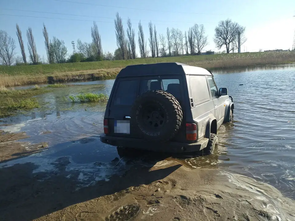 Samochód terenowy został zauważony około godz. 18.00. Utknął w wodzie kanału Ulgi. Kilka godzin wcześniej nasi czytelnicy widzieli jak kierowca auta terenowego jeździł po wałach oraz wodzie w kanale Ulgi. Wjeżdżał do wody i wyjeżdżał, aż w końcu kierowca utknął w kanale. Kierowca zostawił samochód w wodzie i zniknął. Z pewnością wróci z innym samochodem, żeby wyciągnąć z wody terenówkę. Ludzie pytają jak się to ma do zakazu przemieszczania? Czy kierowca terenówki musiał jeździć po wodzie kanału Ulgi i wałach?